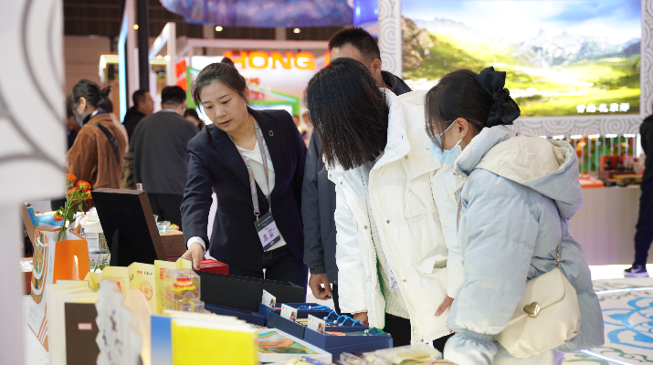 此次甘肃省展厅以“交响丝路·如意甘肃”为主题,展区内设10个接待台、2个非遗项目展示台以及1个专业洽谈区,整体设计融入敦煌飞天、莫高窟、祥云等甘肃元素,将自然景观、人文景观与悠久历史相结合,为嘉宾们打开了深入了解甘肃文旅资源的窗口,成为本次交易会的一大亮点。