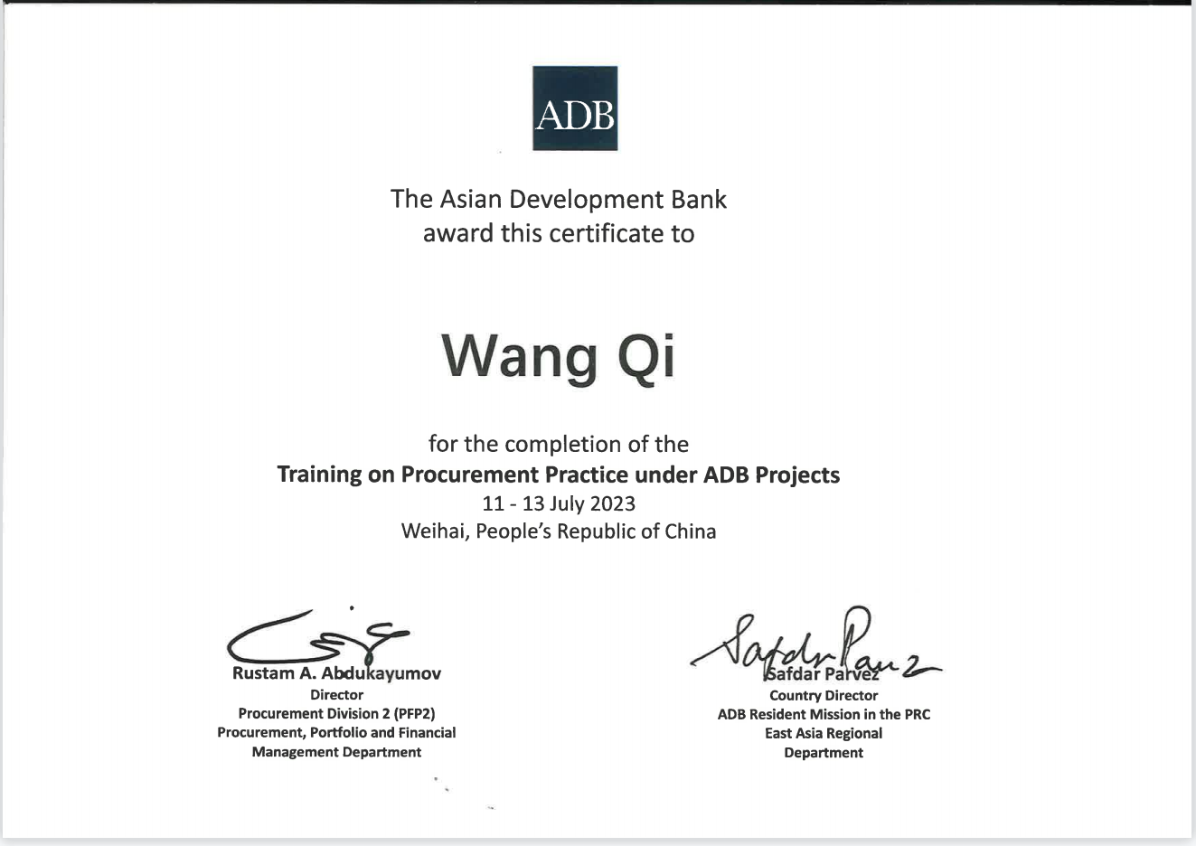 2023年8月,由亚洲开发银行(以下简称“亚行”)主办,亚行驻中国代表处承办的采购实践培训、项目财务管理培训在山东顺利举办。乐动平台app官网_乐动(中国)集团国际金融组织贷款项目管理办公室三名同志作为亚行贷款甘肃环境可持续乡村振兴与发展项目代表参加了此次培训。